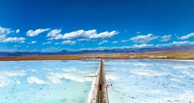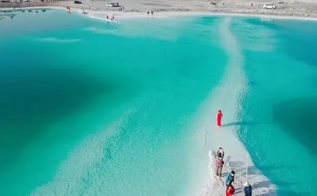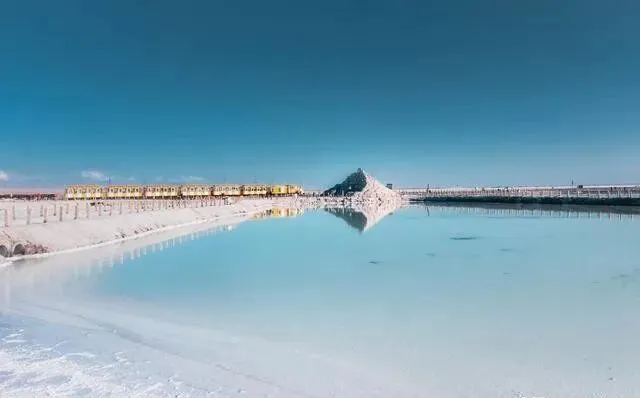 湖面静得一丝水花都没有 , 整个天空倒映在里面 , 人站上去像踩在云上。 可以坐小火车进湖中心 , 还能看到正在生长的盐花 , 一朵一朵的 , 栩栩如生~
