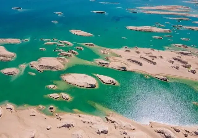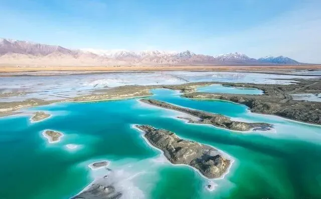 盐池大大小小洒落在湖里 , 形状颜色都不一样 , 真像大珠小珠落玉盘 , 宛如翡翠~