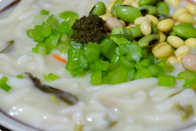 午餐多半是面。浆面条是隐藏王牌。酸、滑、暖,第一次可能不适应,但吃完很舒服。再配一个炸焦丸,口感直接拉满。如果怕踩雷,就选老城里的老字号,别去装修太新的。