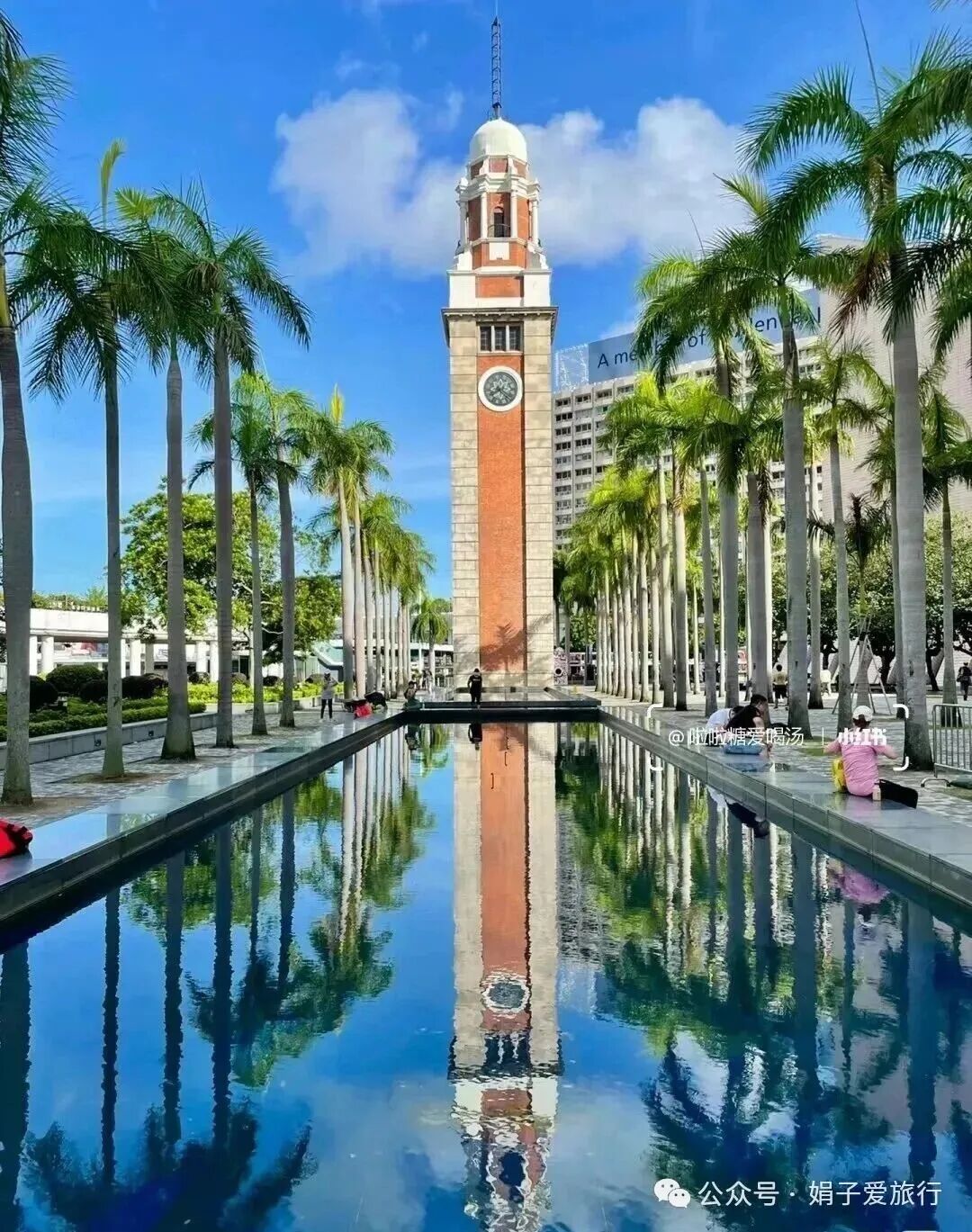 【香港钟楼】:钟楼全称九龙铁路钟楼,高 45 米,建于 1915 年,是蒸汽火车时代的标志,被视为九龙的地标,可到钟楼最佳观景台悠闲的欣赏维多利亚港夜景。