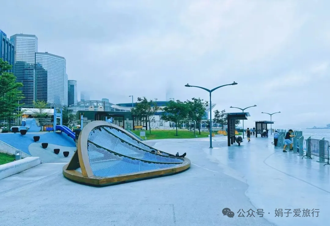 【湾仔码头海滨公园】(约20分钟):天维多利亚港最长的海滨长廊,连接湾仔码头与会展中心。