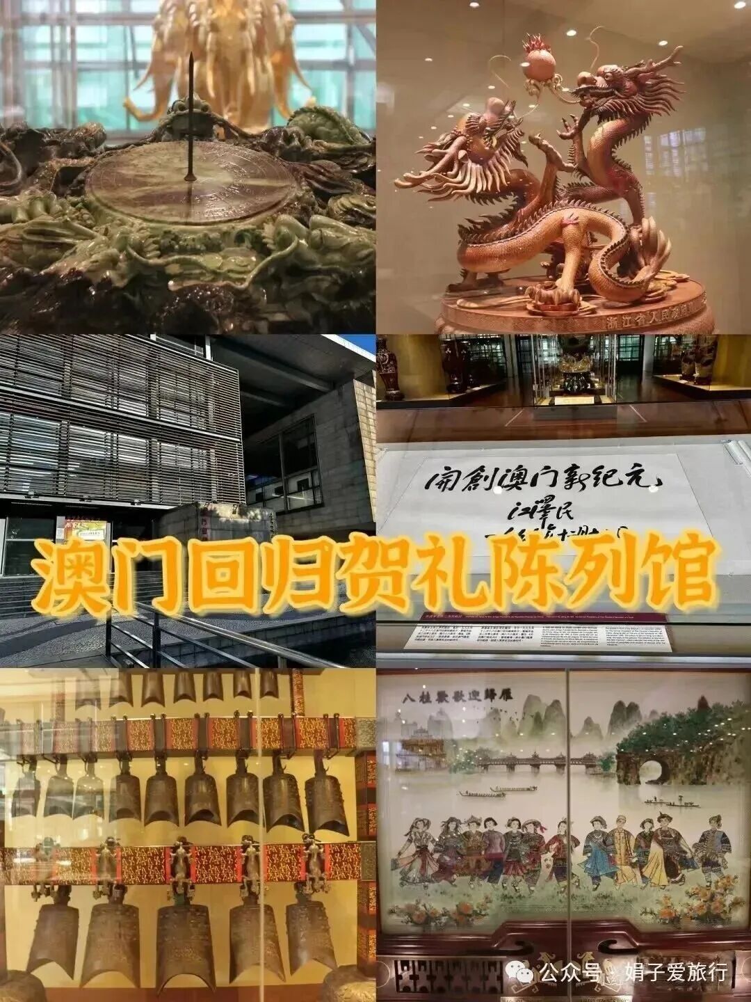 【回归贺礼陈列馆】(停留时间约 40 分钟)在澳门回归时,中国国务院、全国各省、自治区和香港特别行政区均送赠贺礼给澳门贺礼展品景点对面的澳门手信店游客可以自行购买礼品带给亲朋好友。