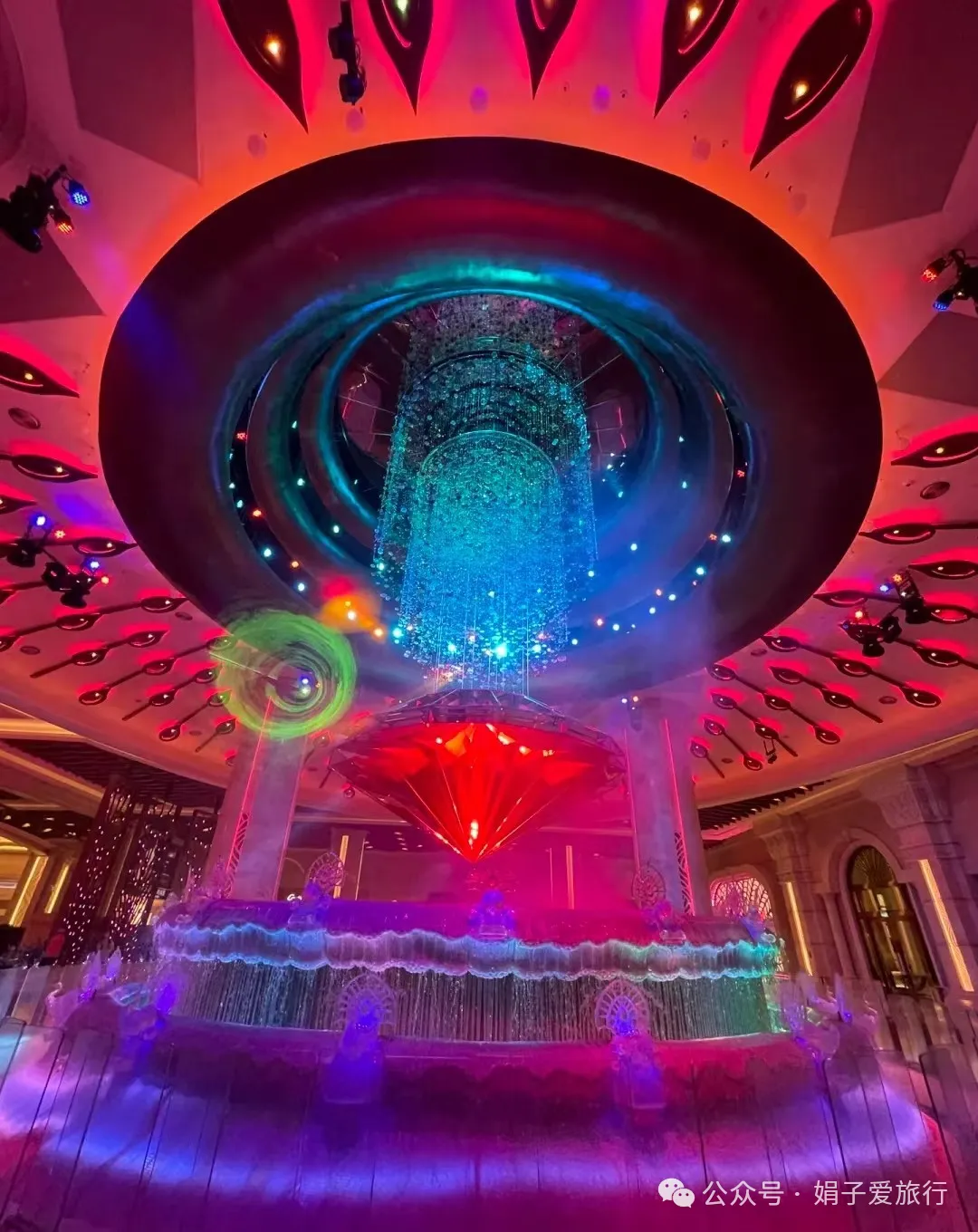 在澳门【享用午餐】。后抵达银河酒店【运财银钻】观钻石秀,(约30分钟)在大堂的正中央舞台,随着音乐及声光效果的呈现,高达3公尺的的闪亮超大钻石水晶灯饰,在水幕中央旋转,带给旅客财来运转的好兆头!