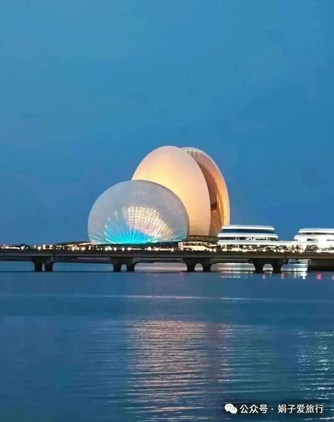 【珠海大剧院】,其设计如一把珠海竖琴,珠海大剧院是一大一小两组"贝壳"的形体又称【日月贝】安排午餐,