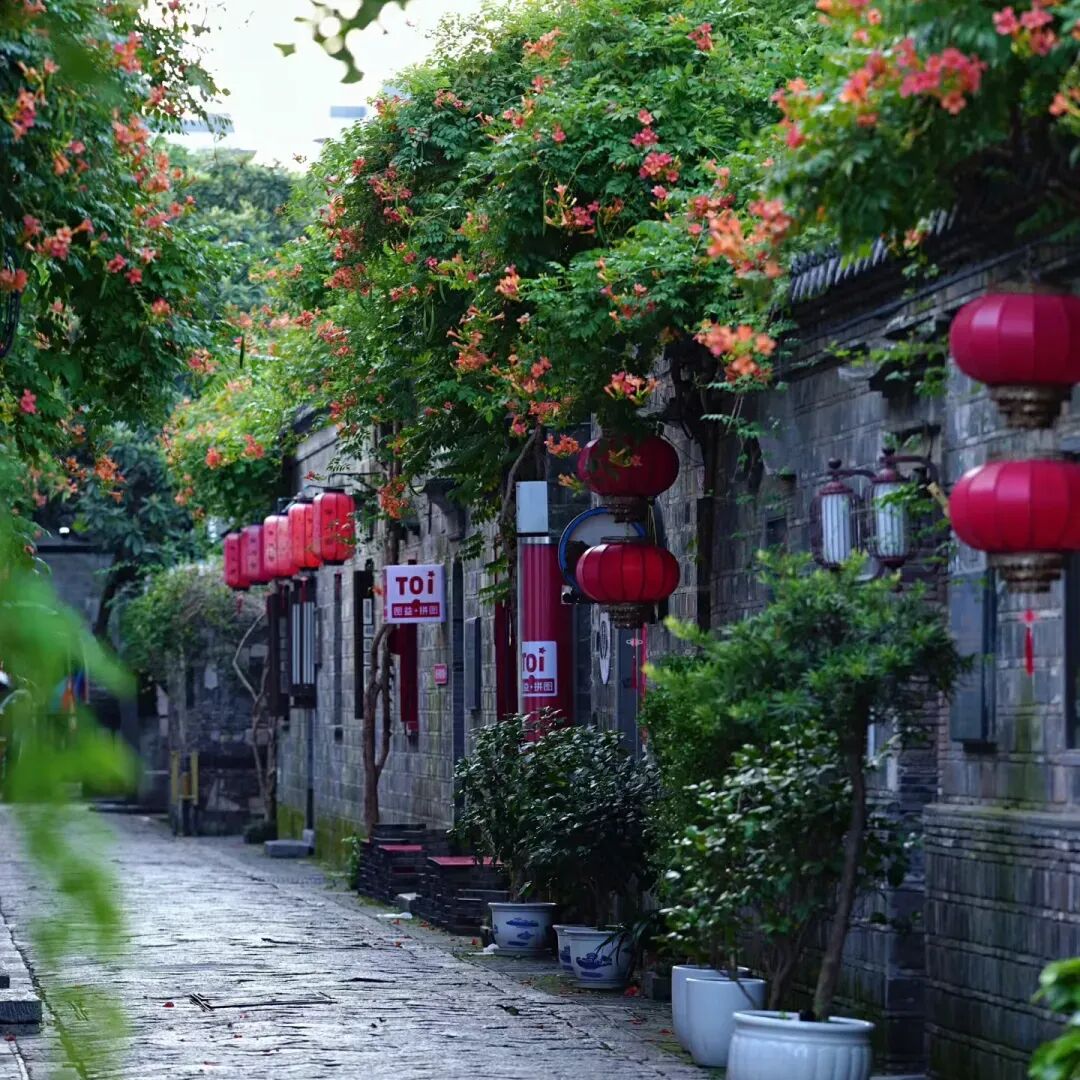 南京已进入深秋时节,可老门东景区的风景还停留在初秋节气,放眼望去,迷人绚烂,色彩斑斓,让人恍如置身画中。蓝天白云,青瓦白墙,还有稀稀疏疏的金、红树叶让整个街巷都诗意绵绵,光从银杏叶底丝丝漏下,彩色的世界,秋意浓浓。