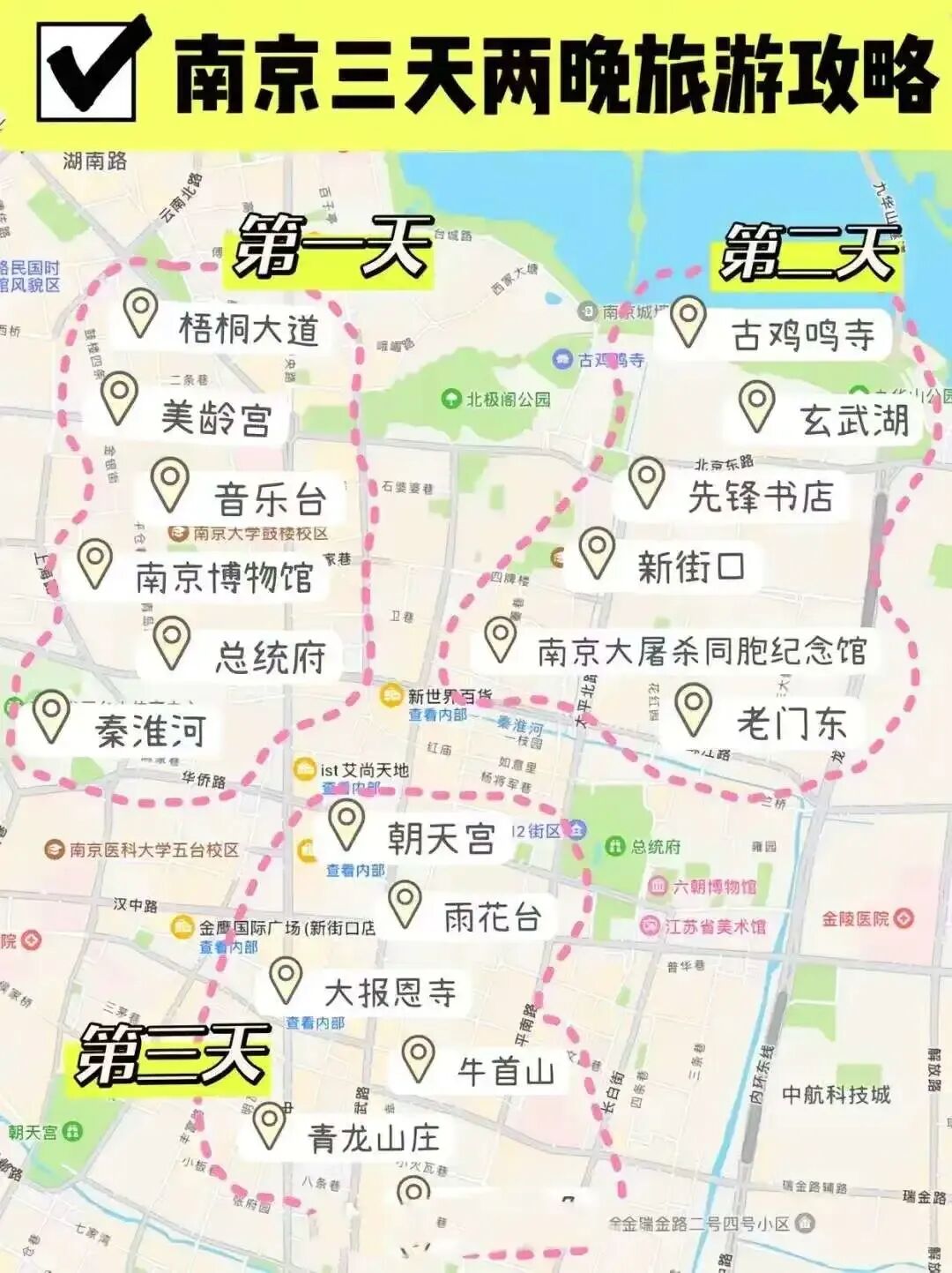 01 D1 出发地-长江轮渡、夫子庙 D2 中山陵、总统府、老门东 D3 栖霞山、牛首山、返程