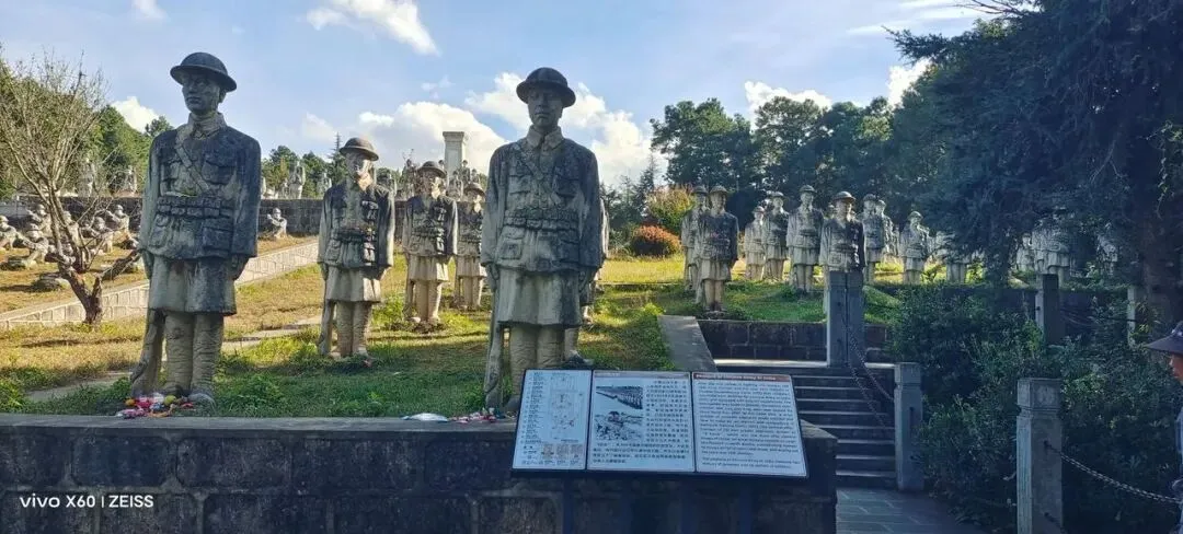 他们在松山待一整天,鞠躬,献花,拍照记录每一个弹坑的位置。国殇墓园里,远征军的墓碑密密麻麻,他们也看,也拍,表情复杂。