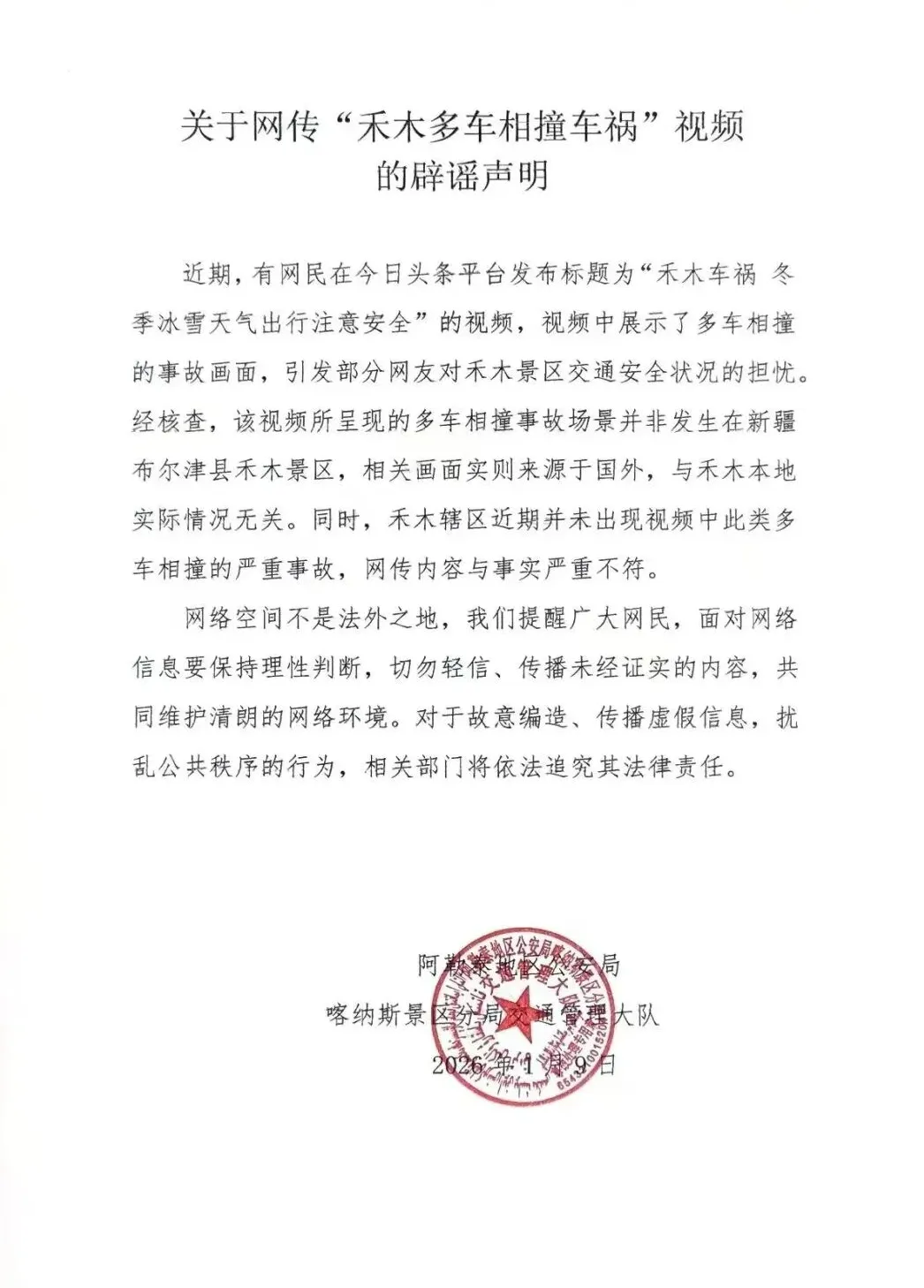 网传“禾木景区发生多车相撞车祸?”当地辟谣