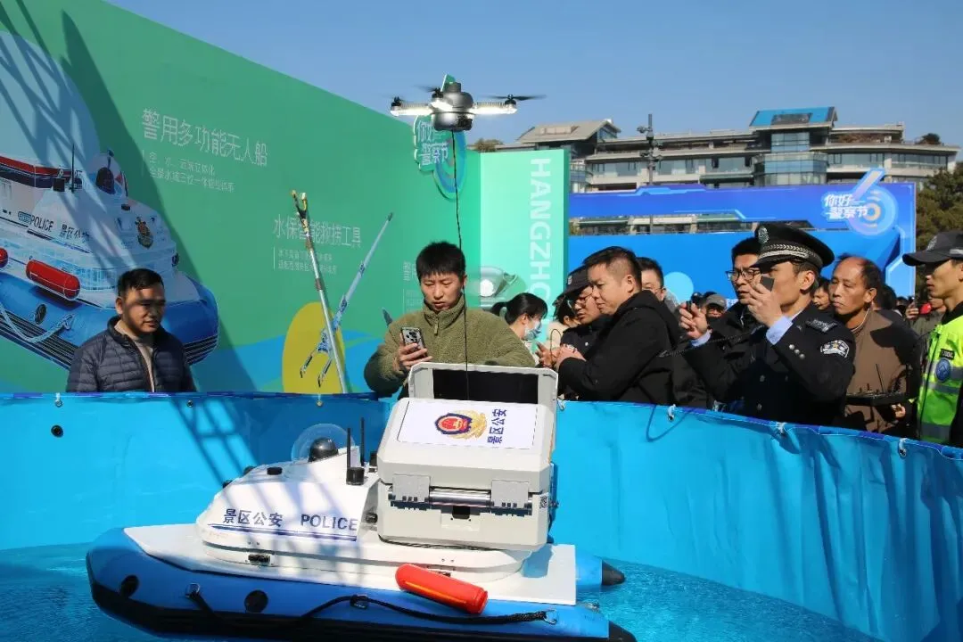 1月9日,杭州吴山广场人头攒动、暖意融融,杭州市公安局“新质战力 平安同行”警营开放活动在此热闹启幕。活动现场,景区分局“AI警队”全员集结亮相,作为全市“黑科技”出镜频次最高的单位,分局的无人船、仿生鱼、履带机器人、外骨骼机器人们悉数登场,用硬核科技实力与亲民互动体验,让市民沉浸式感受智慧警务的魅力,共绘警民同心护平安的温暖图景,全面展现了景区公安“水上探、陆地守、空中控”的智能安防体系建设成果。