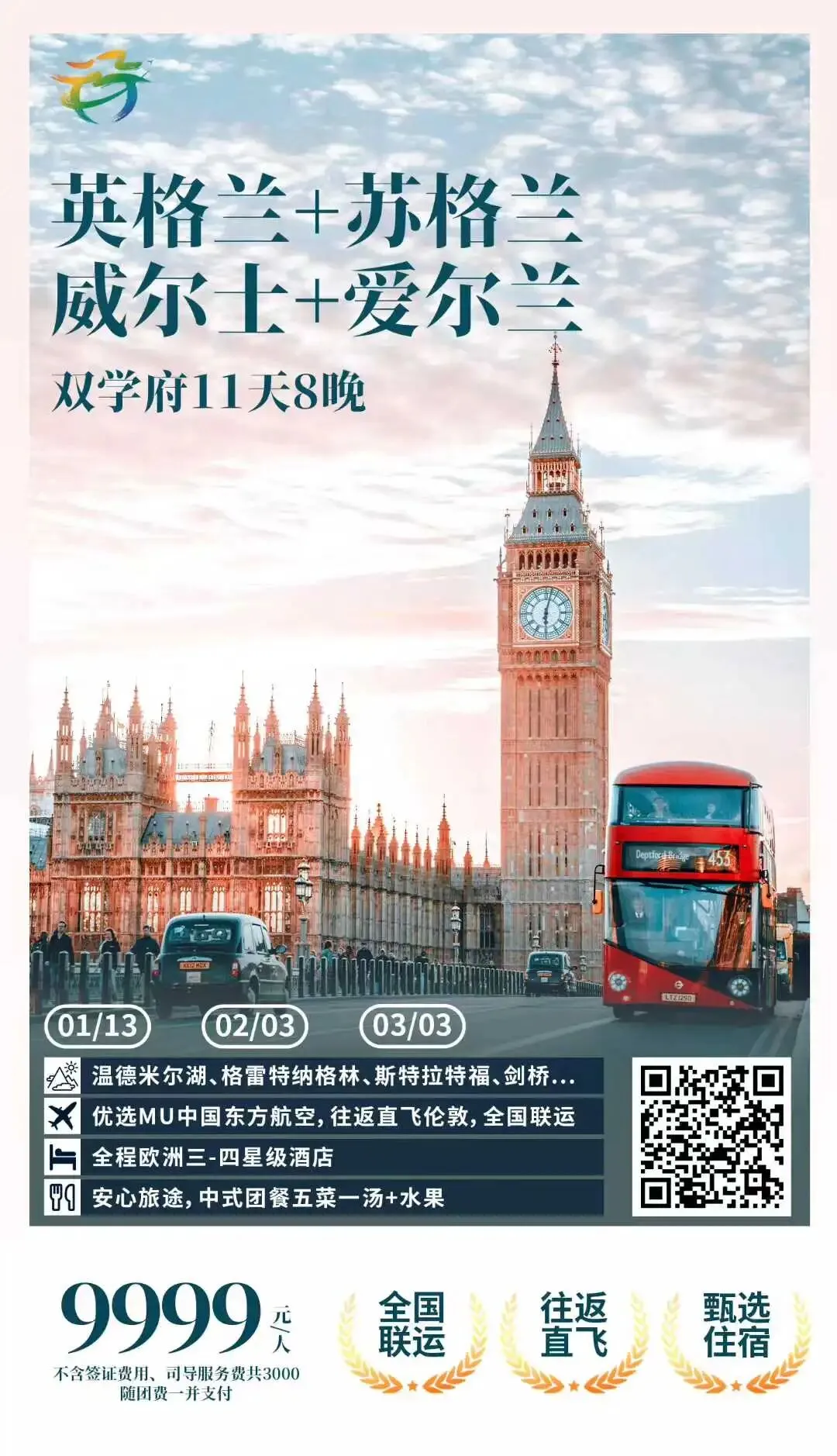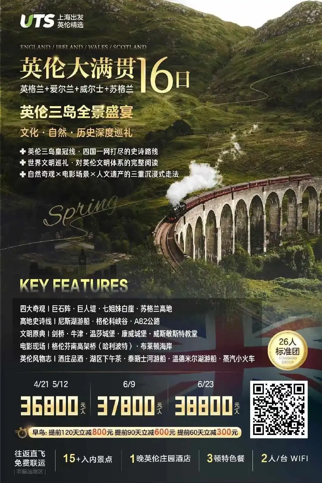 【Ya2🇬🇧英格兰+苏格兰+爱尔兰+威尔士·11天8晚】9999元/人