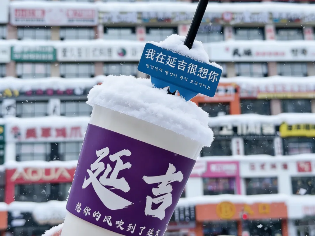 延吉网红弹幕墙在雪天也别有一番情调,游客们纷纷手持印有 “延吉” 字样的咖啡拍照留念,定格这美好的瞬间。
