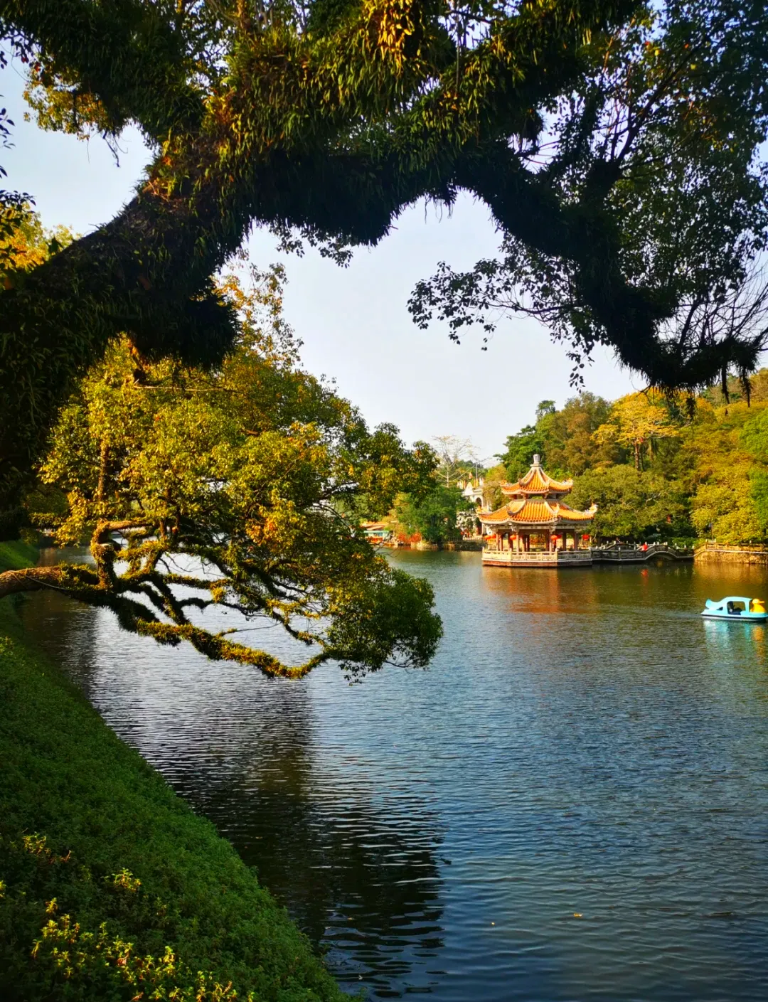 位于环城西路与中山路交汇处,原为古城护城河,今为市民休闲胜地。园内山水相依,小巧精致,拥有摩崖石刻、革命纪念馆、儿童游乐区及泛舟湖面的“西湖鱼筏”——此景位列“潮州八景”之一。