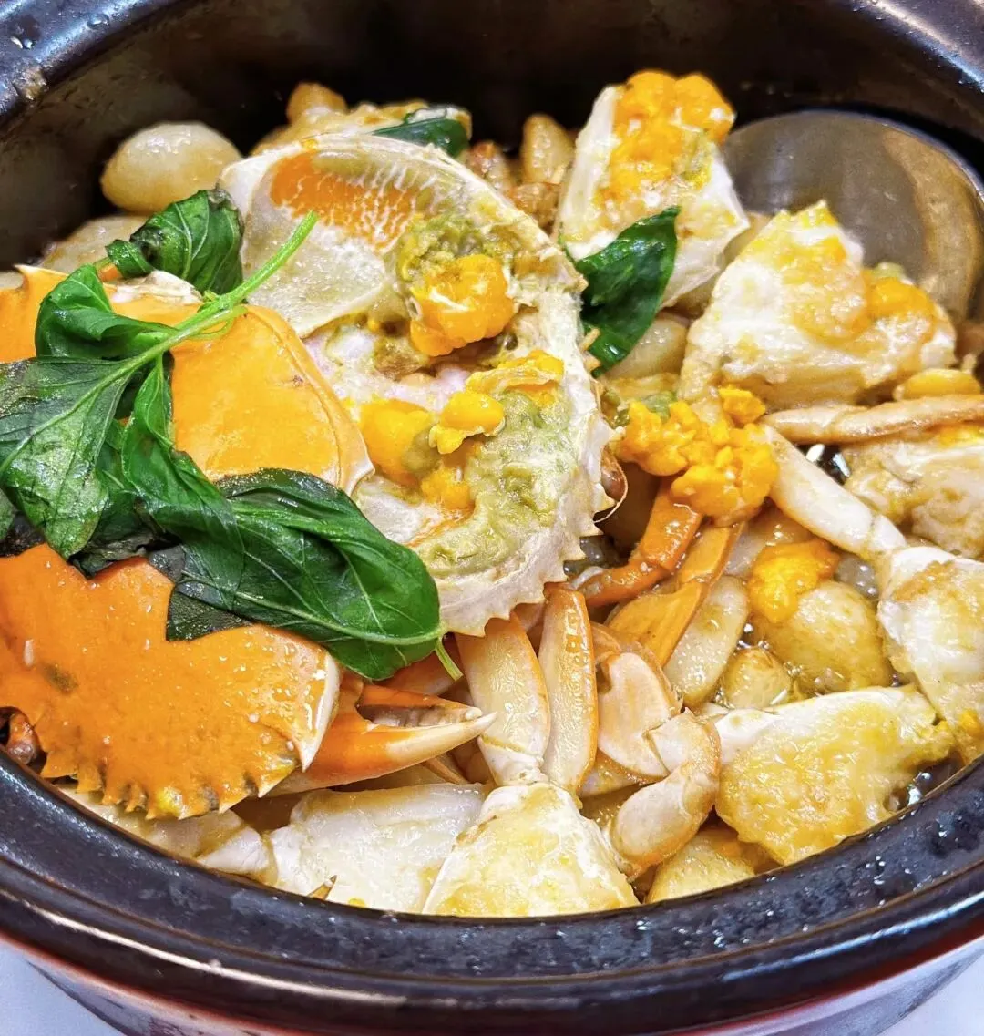 以潮汕特制豆酱、蒜瓣与鲜活青蟹焗制,咸鲜回甘,蟹肉饱满。