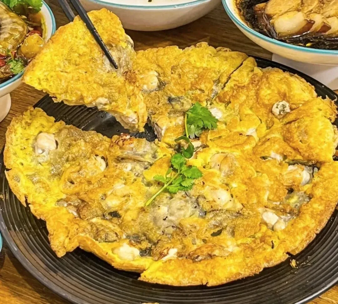 鲜蚝与鸡蛋、薯粉煎成金黄酥脆的烙饼,外酥里嫩,海味浓郁。
