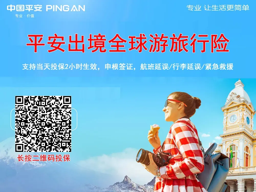 7、平安出境全球游:承保全球,境内游及出境游通用,支持人在境外可投、申根签证可用,支持投保当天2小时生效,承保自由行、自驾游、承保高原、高风险运动。覆盖出境旅行、留学、探亲、陪读,扩展心脑血管疾病、高血压及糖尿病急性发作导致的紧急治疗废用,涵盖紧急救援、航班延误、行李延误、票证损失、第三者责任等。