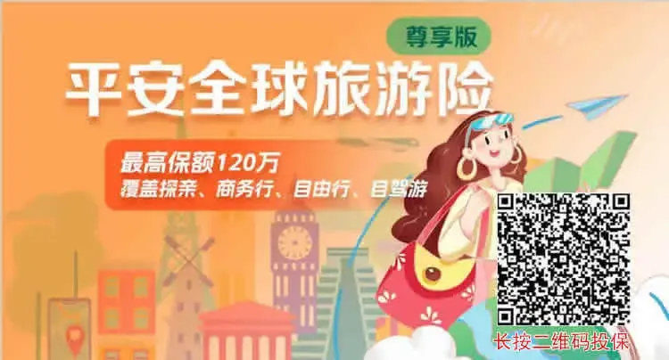 6、平安全球旅游险(尊享版):个人企业,外籍可投,1天起保最长1年,身故最高120万医疗最高100万,含紧急救援/行李延误/申根签证