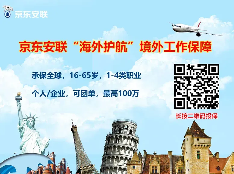 19、京东安联“海外护航”境外工作保障:承保全球,8个计划最高100万,个人/企业,可团单,保障责任全,同时涵盖紧急救援、旅程延误等