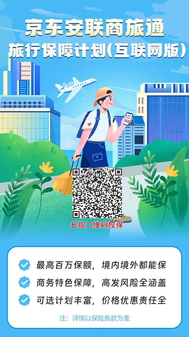 20、京东安联商旅通旅行保障计划:商旅专属,护照等可投,境内境外都保,4个计划,最高百万,涵盖医疗运返/旅行延误/行李延误/财务损失