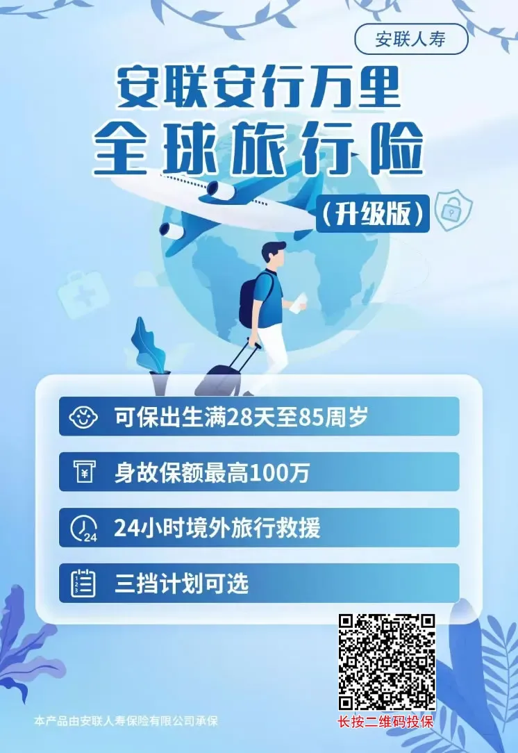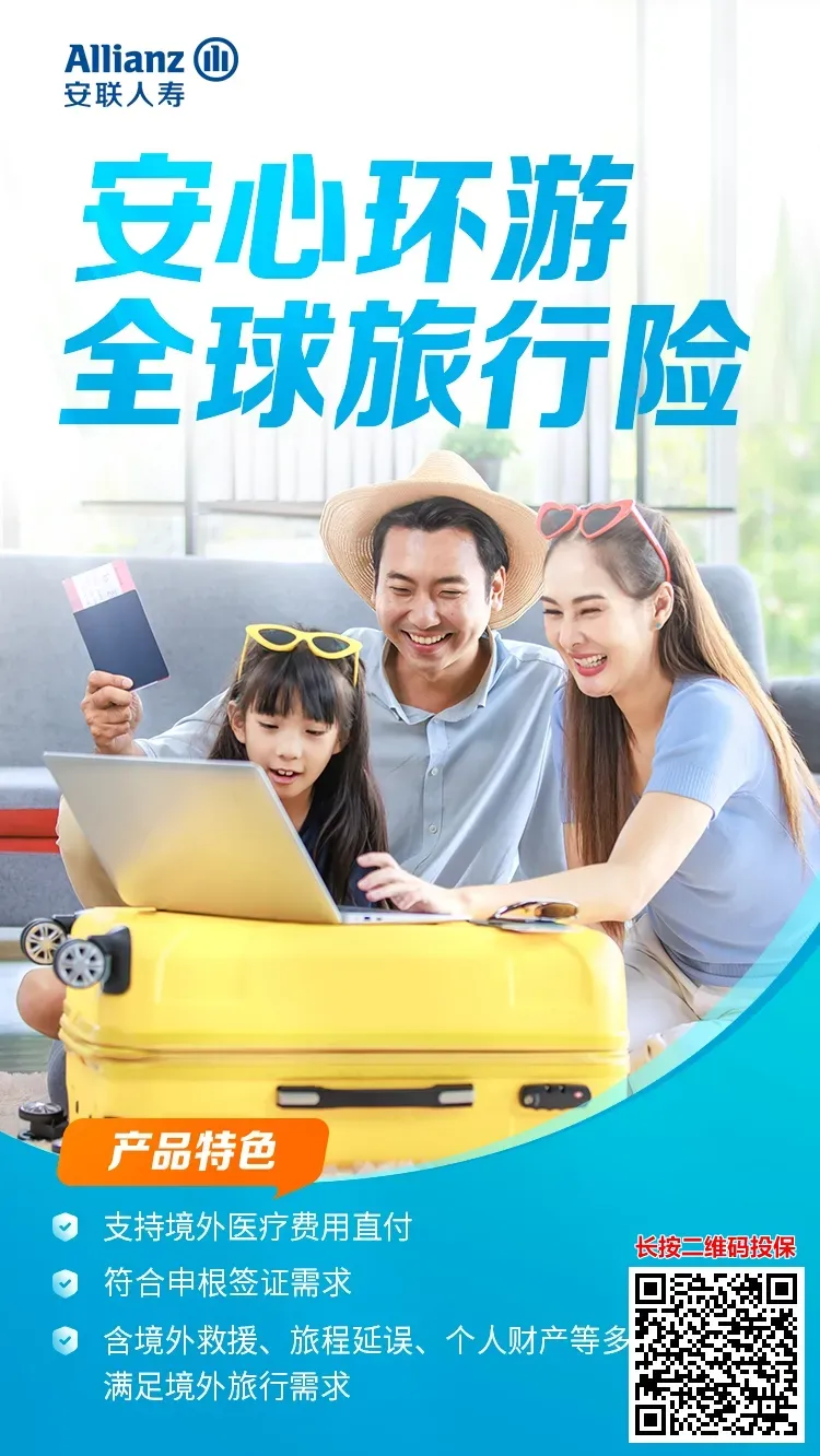 25、安联安心环游全球旅行险:自选日期,最长1年,支持境外医疗费用支付,涵盖高风险项目/航班延误/行李延误/钱财损失/申根签证拒签补偿
