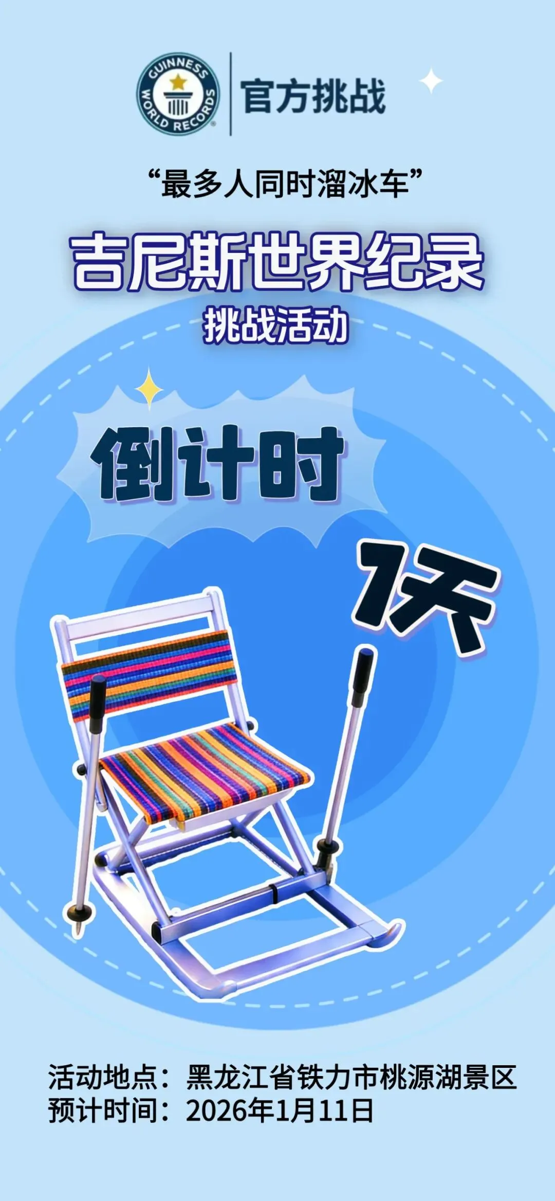 【悠游铁力】黑龙江铁力市桃源湖景区“最多人同时溜冰车”吉尼斯世界纪录挑战活动,倒计时1天 !