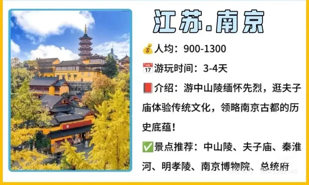 中山陵的庄严肃穆,夫子庙的灯火阑珊,秦淮河畔的评书声声