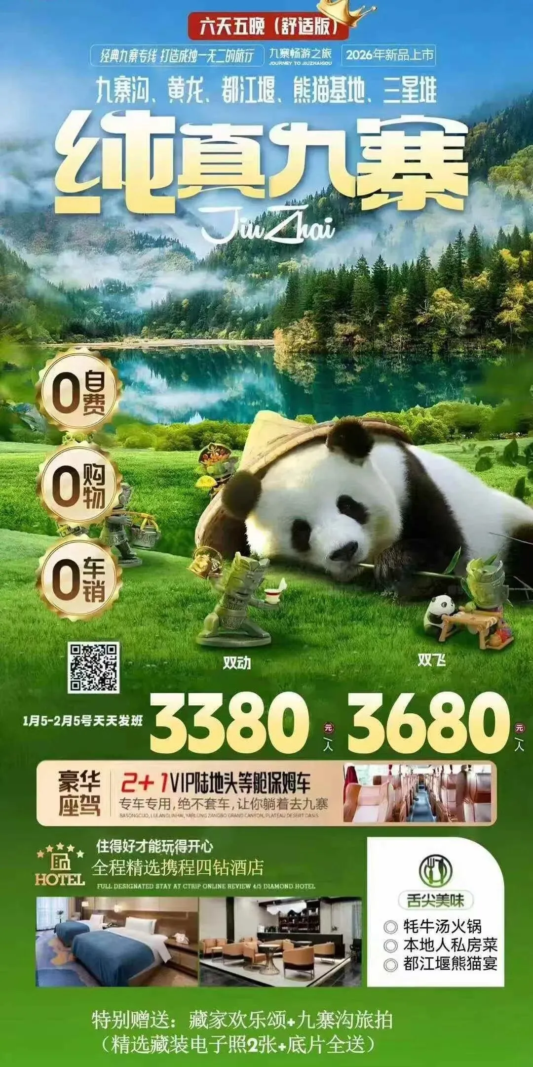 🚀【纯真九寨】九黄都熊三星堆六日游