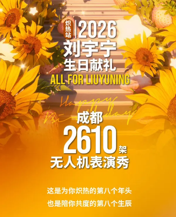 ▫️ 晚上:原定爱情岛无人机盛宴,改为不公布(因为安全原因,担心人多不可控的因素)·见证星光为他闪耀 📅 表演时间:2026年1月8日 20:00(刘宇宁生日倒计时3天) 📍 表演地点改为不公布(因为安全原因,担心人多不可控的因素) ✈️ 无人机数量:2610架(谐音“爱刘宇宁”,为内娱粉丝应援史上规模最大的一次) ⌛ 表演时长:约14分钟 ⚠️ 注意事项:相关部门提醒粉丝不要聚集,粉丝群体也多次呼吁“不聚集、不扎堆”,避免因人群聚集导致活动取消,建议分散在附近几公里范围内观看。 👉 追光时刻:当夜空亮起的瞬间,所有粉丝不约而同地举起灯牌、轻声合唱,这一刻,热爱无需言说却无比滚烫。可提前备好“燃炸歌单”,无人机秀结束后循环《野人》《地球卫星情人》《造梦机》,强劲鼓点搭配极具爆发力的声线,将现场氛围推向高潮。这不仅是一场视觉盛宴,更是粉丝对他“逆天改命”之路的致敬——就像这漫天无人机,每一盏微光汇聚,便成了照亮他前行的星海;而他的奋斗,也成了照亮粉丝的光,双向奔赴的意义在此刻尽显。 👉 贴士:观赏结束后可步行至东光小区吃夜宵,打卡烤串、冷淡杯,人均50+。