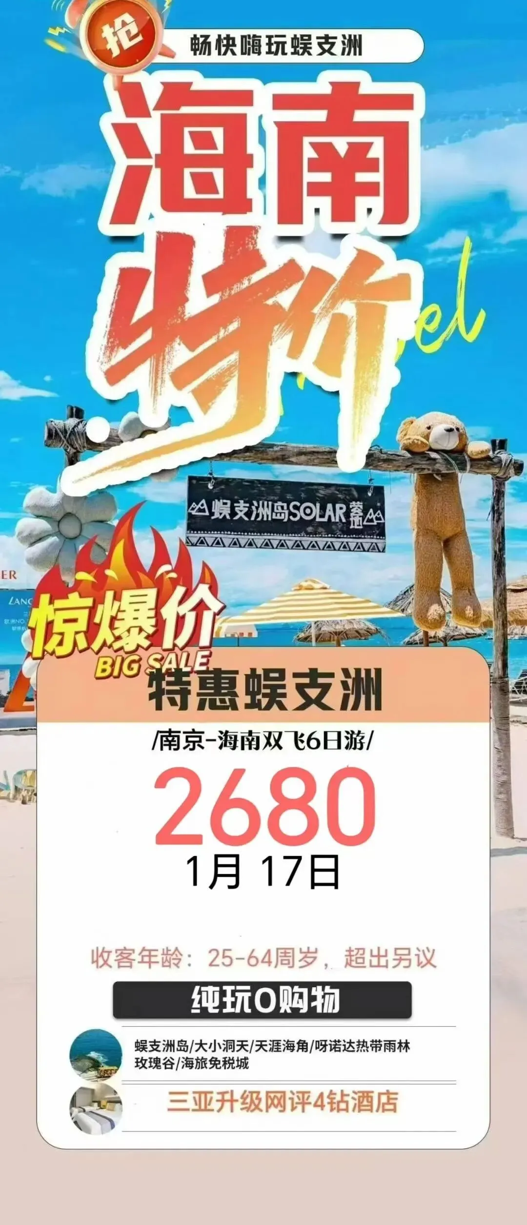✈️南京出港‼️海口-万宁-陵水-三亚-儋州