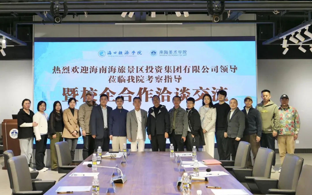 2026年1月7日下午,海南海旅景区投资集团有限公司(以下简称“海旅景区集团”)考察团一行走进海口经济学院南海美术学院,围绕深化校企合作、推动产教融合开展专题交流。双方就课程共建、实习就业、项目协同创新等议题达成多项共识,标志着校企产学研协同服务海南自贸港建设迈出实质性一步。