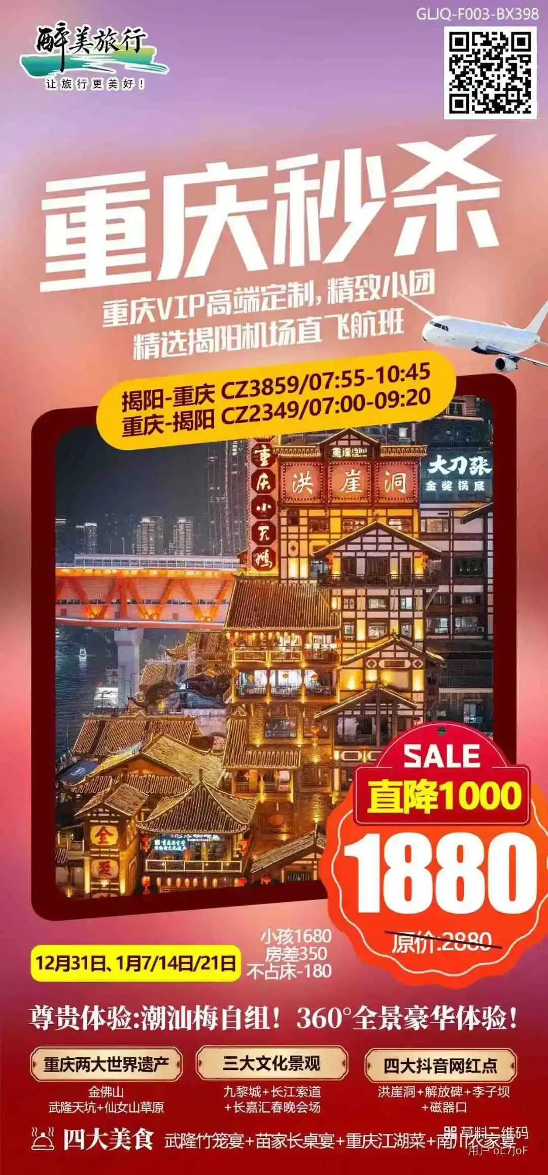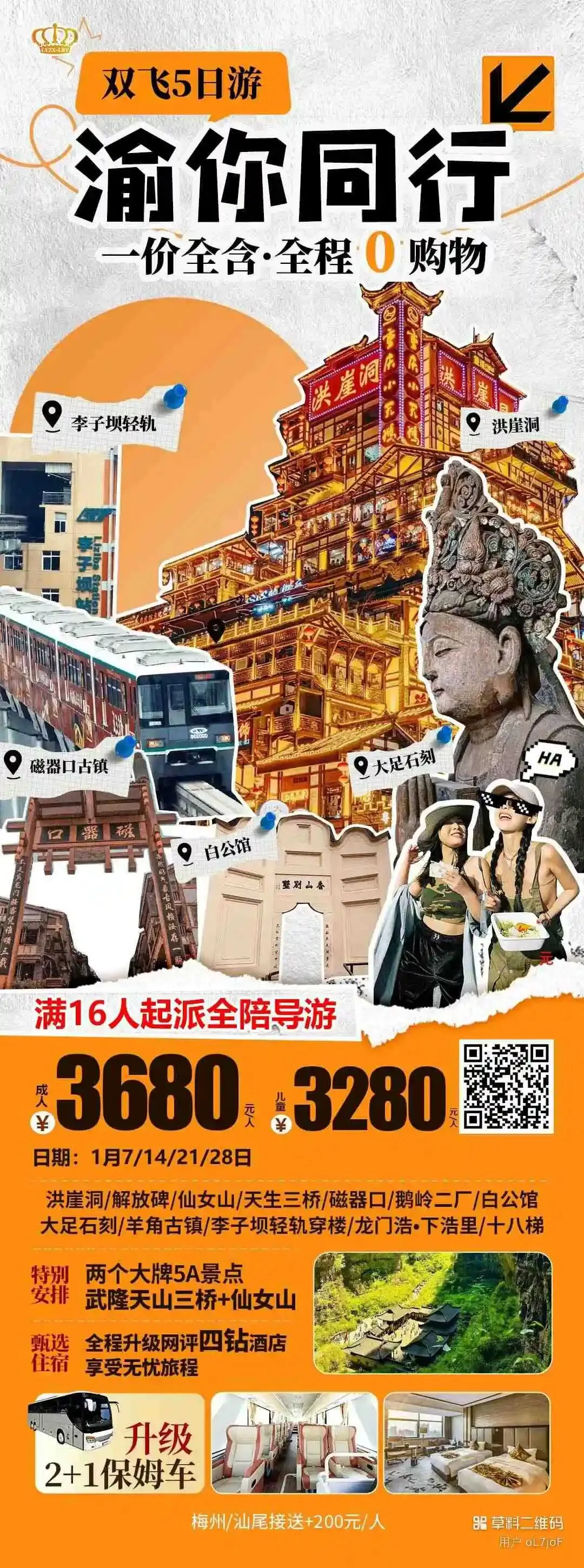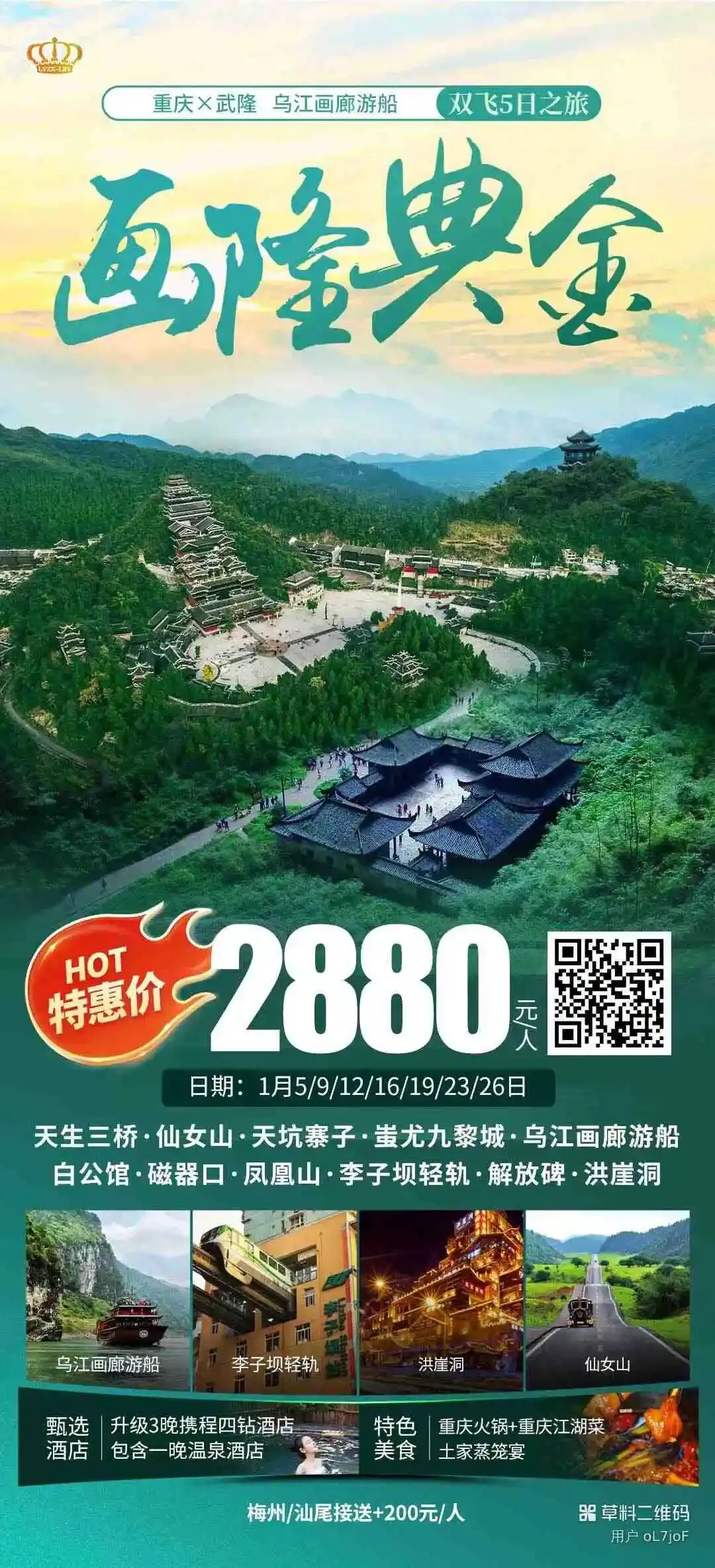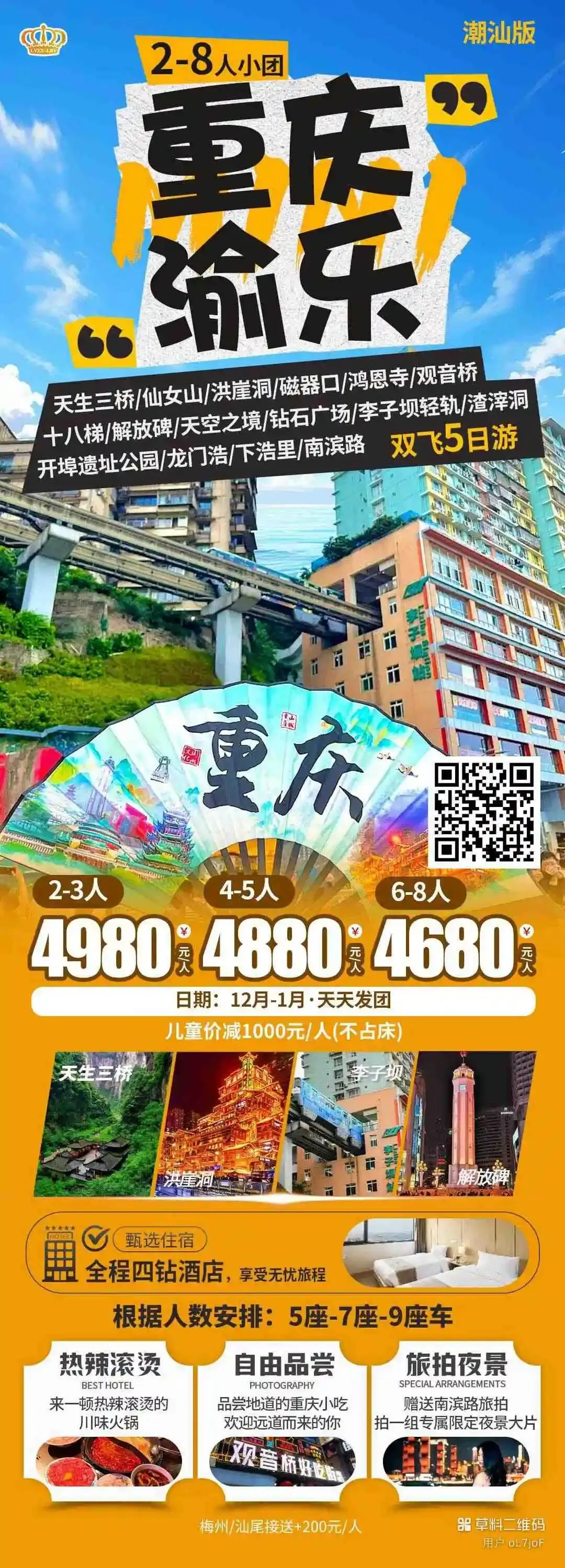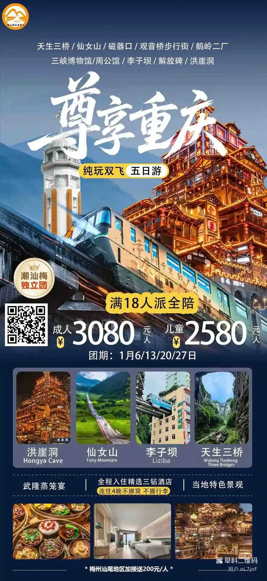 【新世纪】1-2月重庆旅游线路推荐