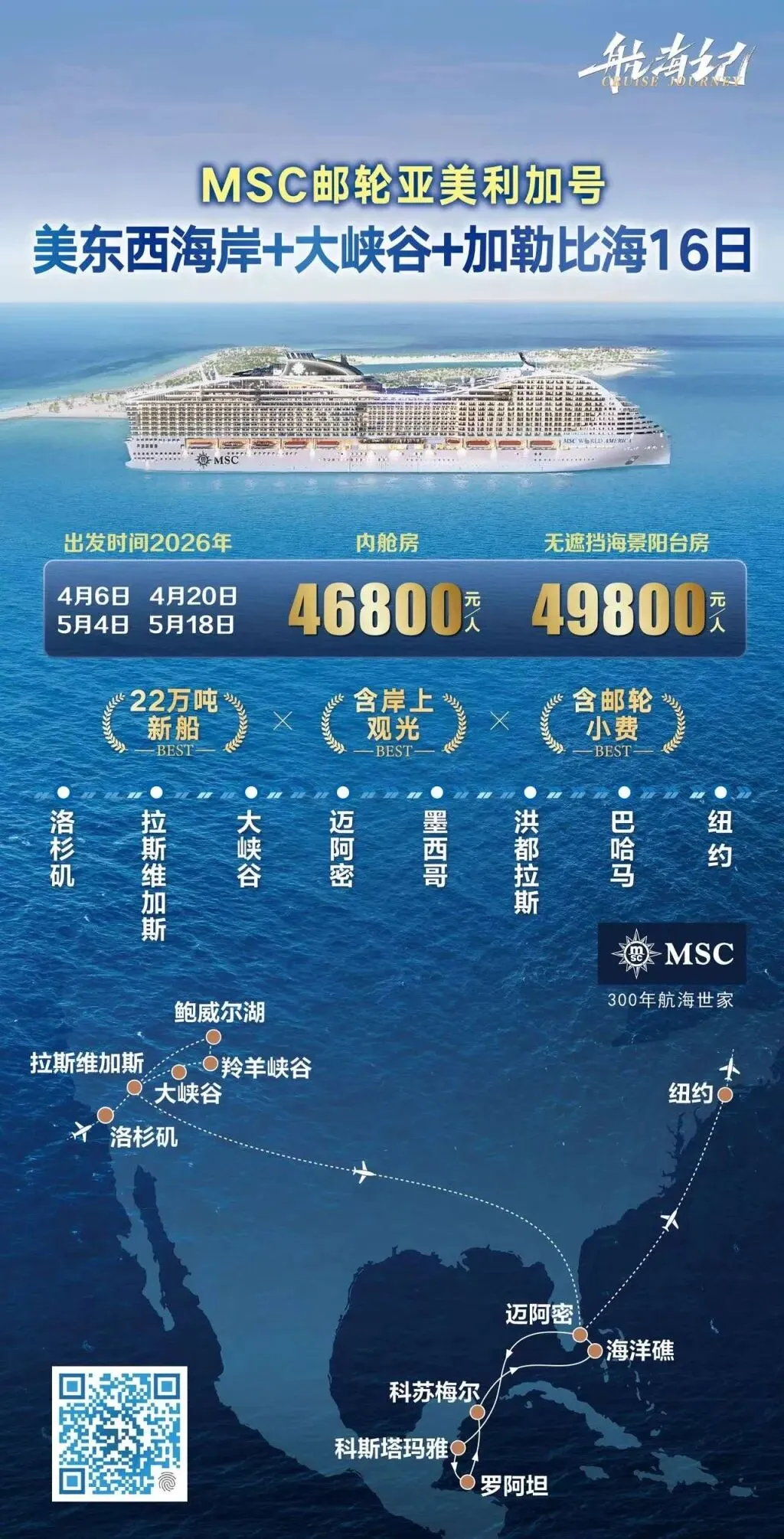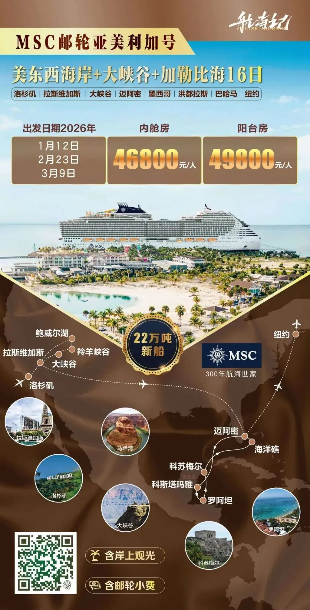 🛳️MSC邮亚轮美利加号 美西东海岸+大峡谷+加比勒海16日