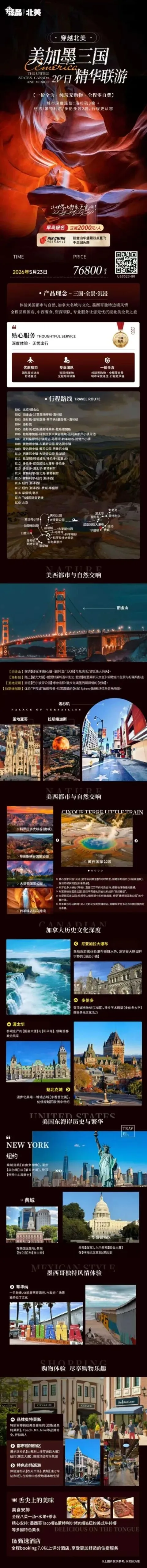 🌍 一次旅程,横跨三国,从太平洋到五大湖,从峡谷到国会,从好莱坞到魁北克,全景收藏北美自然、历史与多元文化。
