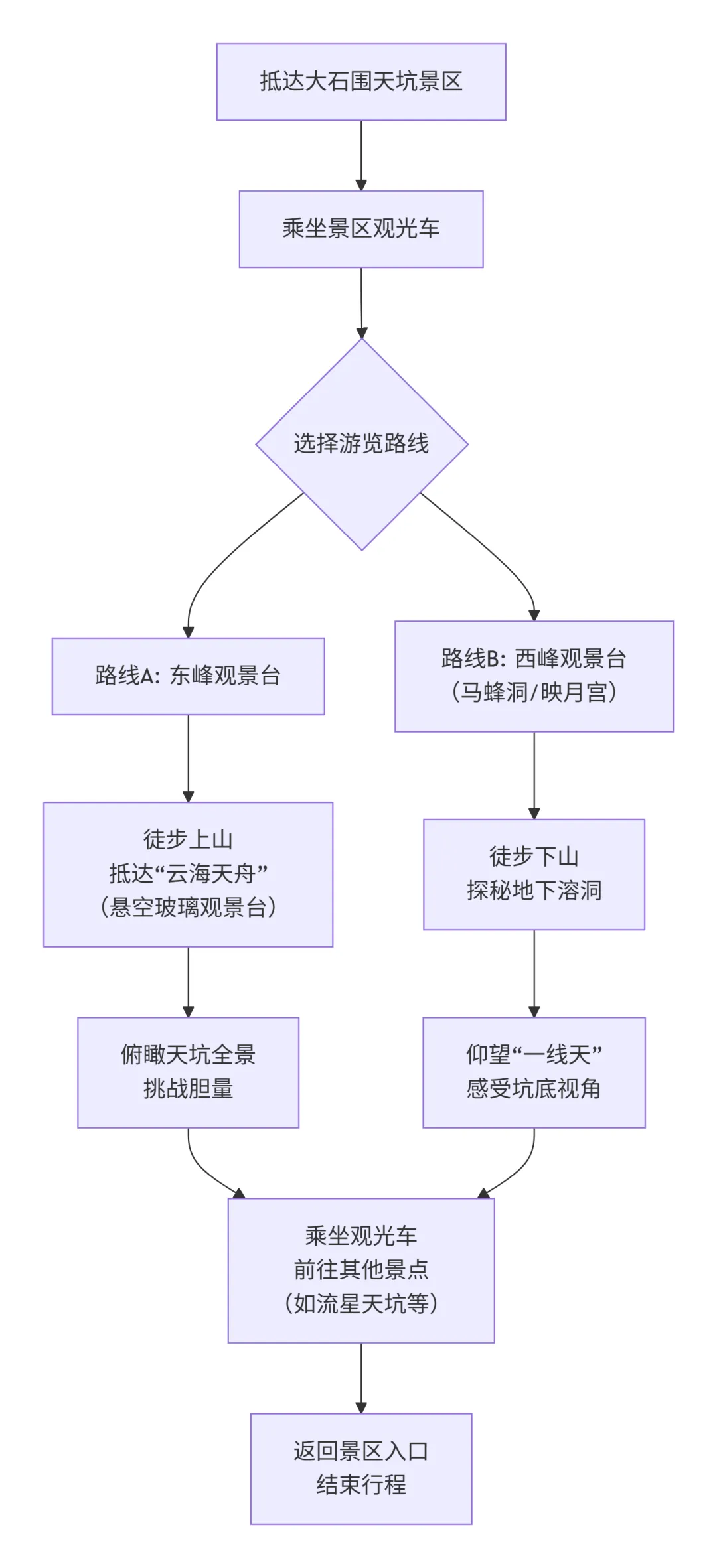 下图清晰地展示了游览大石围天坑景区的核心路线与体验项目: