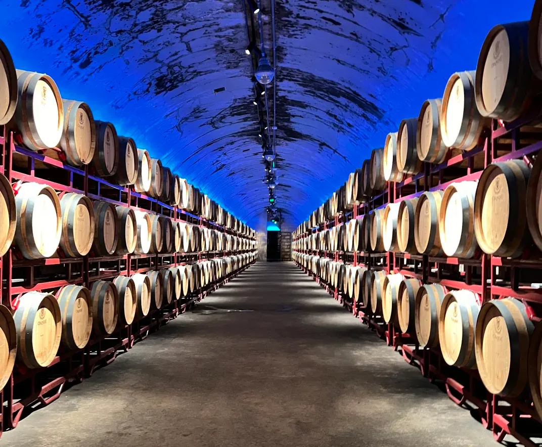 1892年张弼士在这办厂,地下酒窖一排排橡木桶,凉得很。