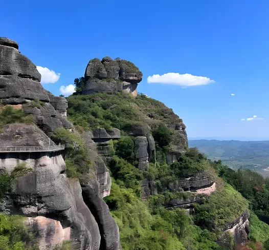 第五站:霍山·丹霞绝壁的险峻诗篇龙川县田心镇的“粤东第一险峰”,船头石观云海如乘巨轮破浪。玻璃栈道悬于百米悬崖,一线曙光石缝攀爬体验“一夫当关”气势。山顶七井仙泉可接山泉饮用,门票40元需穿防滑鞋。