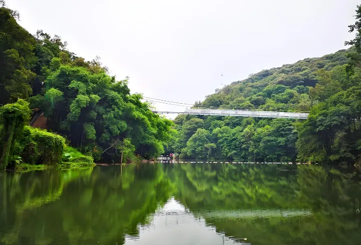 第六站:桂山原始森林·北回归线的天然氧吧源城区桂山大道的广东最大原始次生林,十八里花溪徒步可见野生猕猴。玻璃观景台远眺万绿湖,夏季漂流全程3.5公里落差80米。门票46元,建议自带驱蚊液,下山可尝清蒸桂花鱼。