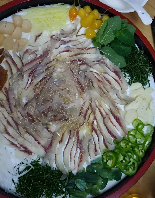 第三美食:八宝鱼生·龙川山茶油的鲜甜密语活水草鱼经十日流水瘦身,肉质紧实鲜甜。秘制八宝配料——鱼生草、姜丝、蒜泥、花生米、芝麻、炒米、茶油、盐——与龙川山茶油调和,层次丰富无腥味。龙川县“八宝楼”人均80元,需提前订位。