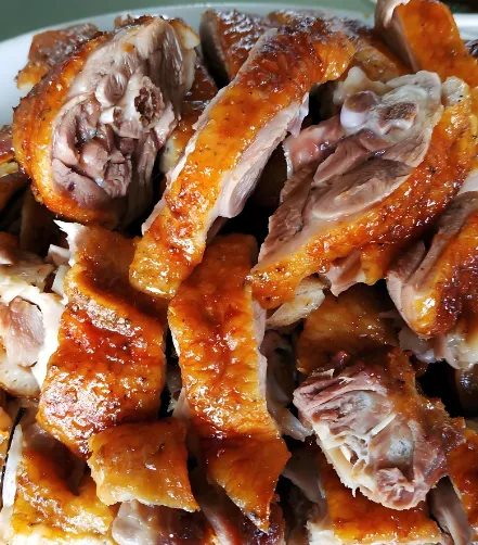 第四美食:义合鸭·东江风味的酥脆传奇独门秘制蘸料提升成色,鸭肉嫩皮酥,咸香脆爽。义合镇“东江酒家”传承古法,需经繁复工序制作,是当地节庆必备佳肴。