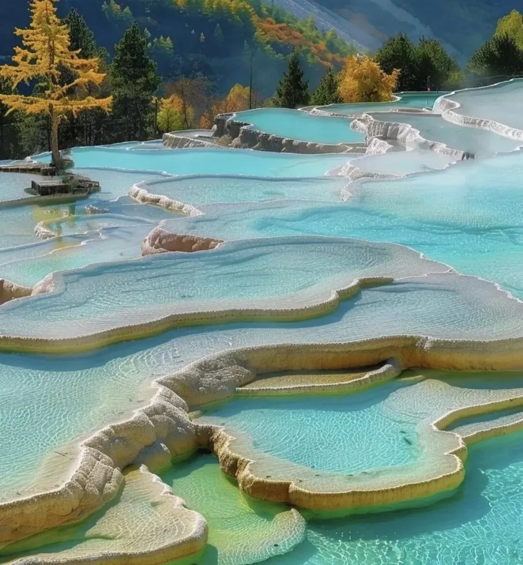 以彩池、雪山、峡谷、森林“四绝”著称,3400个钙华池如金色巨龙蜿蜒于山谷,宛如“人间瑶池”。