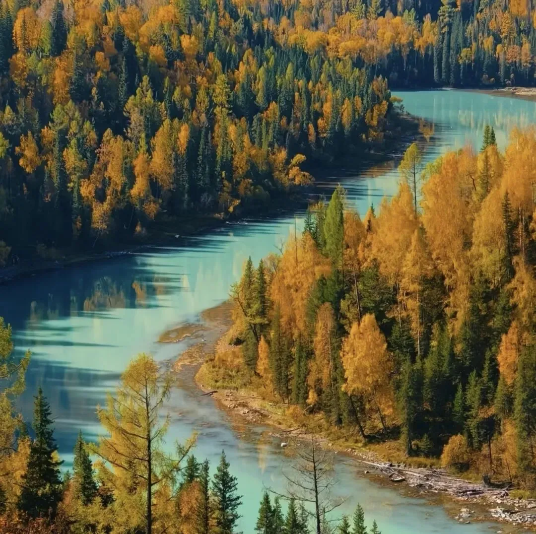 高山湖泊喀纳斯湖及周边雪山、草原、白桦林构成秀美风光,被誉为“东方瑞士”,秋季色彩斑斓如童话世界。