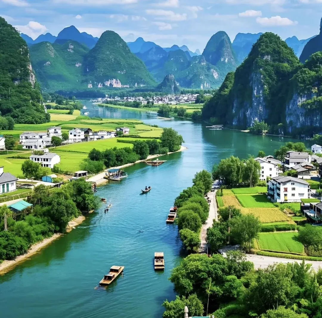 “桂林山水甲天下,阳朔山水甲桂林”,遇龙河、月亮山等景点山水相依,可乘竹筏感受山水画卷之美。
