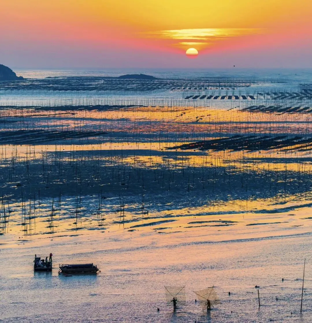 中国最美的滩涂之一,四季潮汐变幻,金色沙滩、滩涂风光如油画般美丽,是摄影爱好者的天堂。