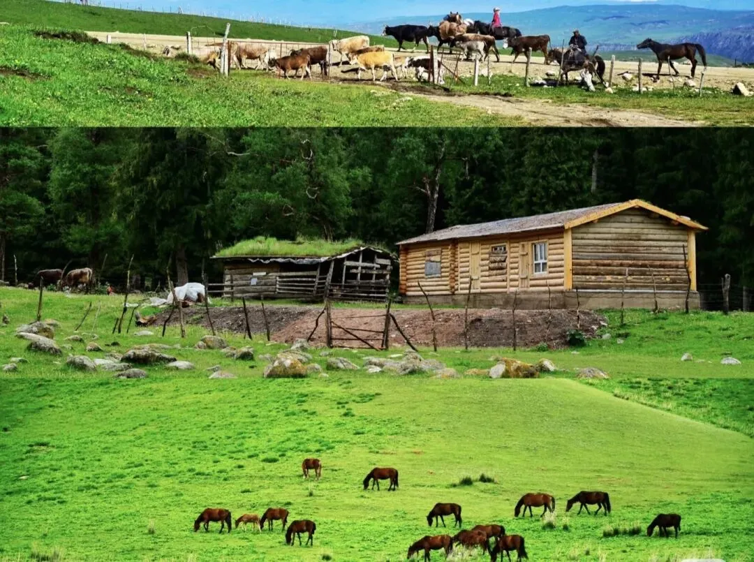 新疆伊犁的原生态牧业村,草原、雪山、溪流交织,可体验游牧生活,感受“风吹草低见牛羊”的诗意。