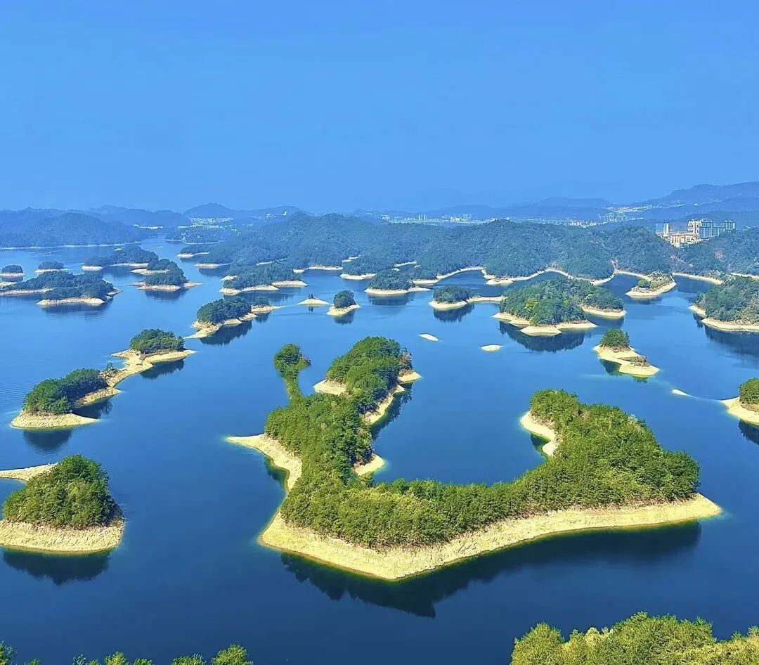 新安江大坝截流形成的人工湖,湖水清澈,岛屿星罗棋布,兼具太湖的烟波浩渺与西湖的灵韵。