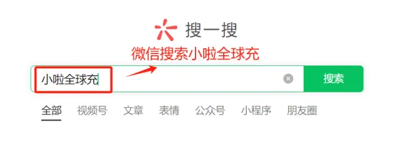 打开微信→ 搜索“小啦全球充”并关注公众号