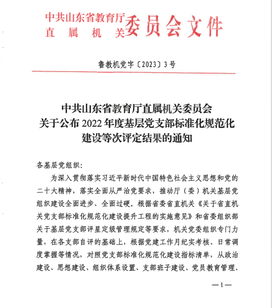 被中共山东省教育厅评定为