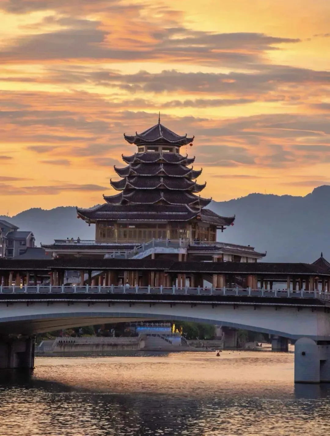 二、芷江 落日把云揉成橘色,龙津桥的瓦檐便浮在烟霞里