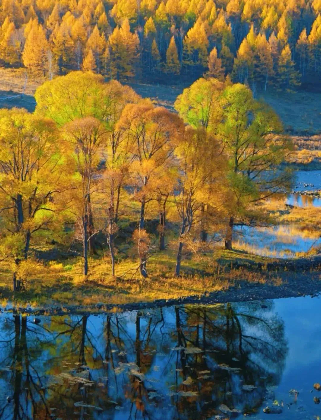 七、阿尔山橙黄与赭红交织,偶有青松的墨绿点缀其间,像幅被阳光熨烫过的油画