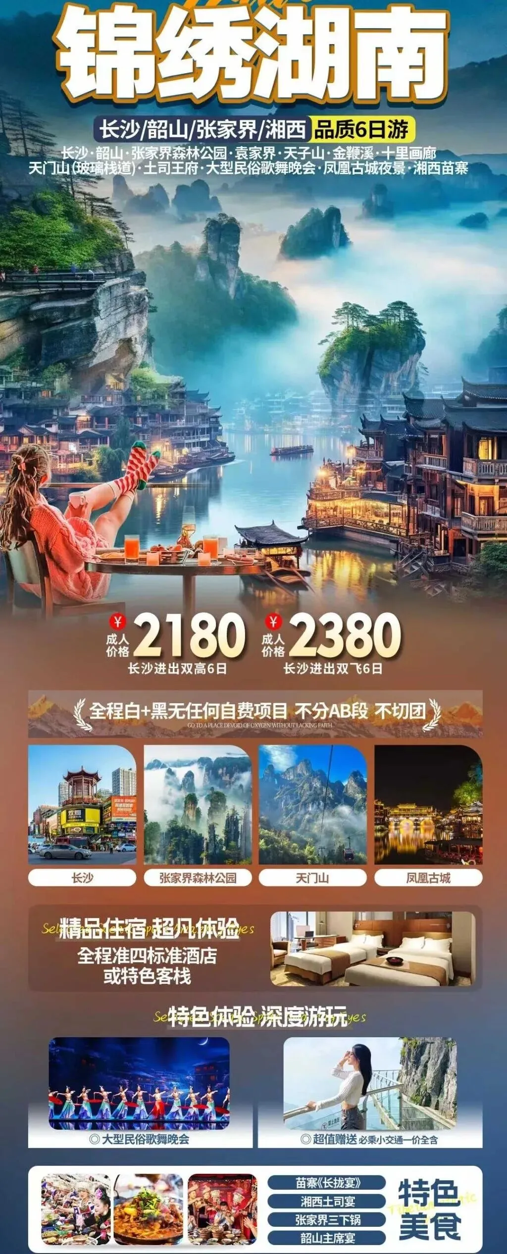 👀长沙/韶山/凤凰古城/宝峰湖/大型民俗晚会/天门山/国家森林公园等大牌景点一价全含
