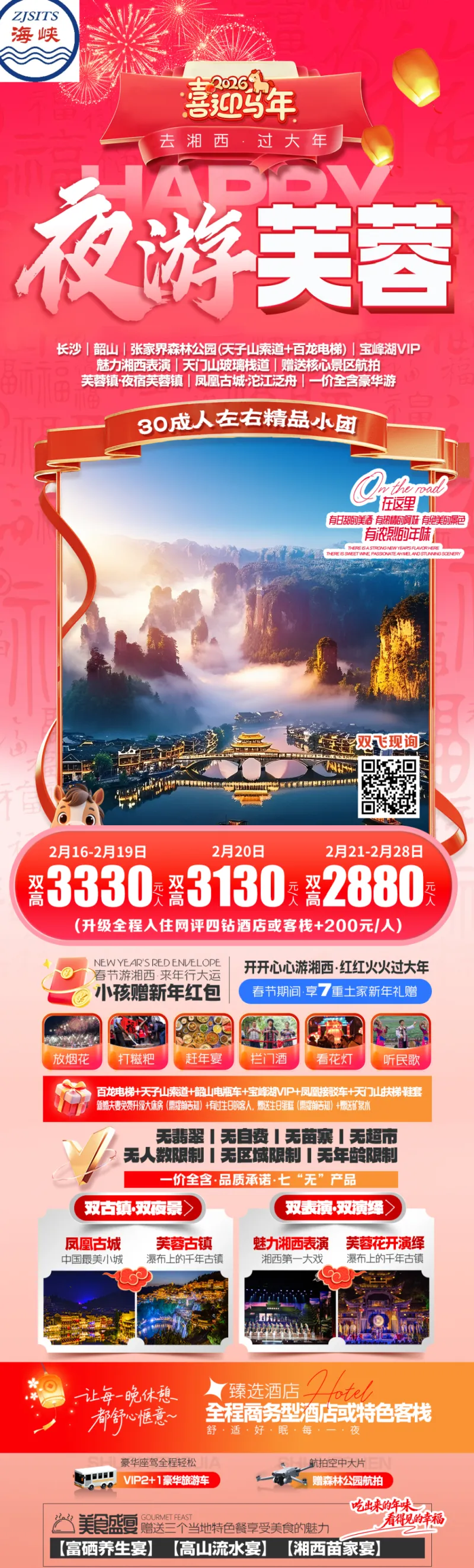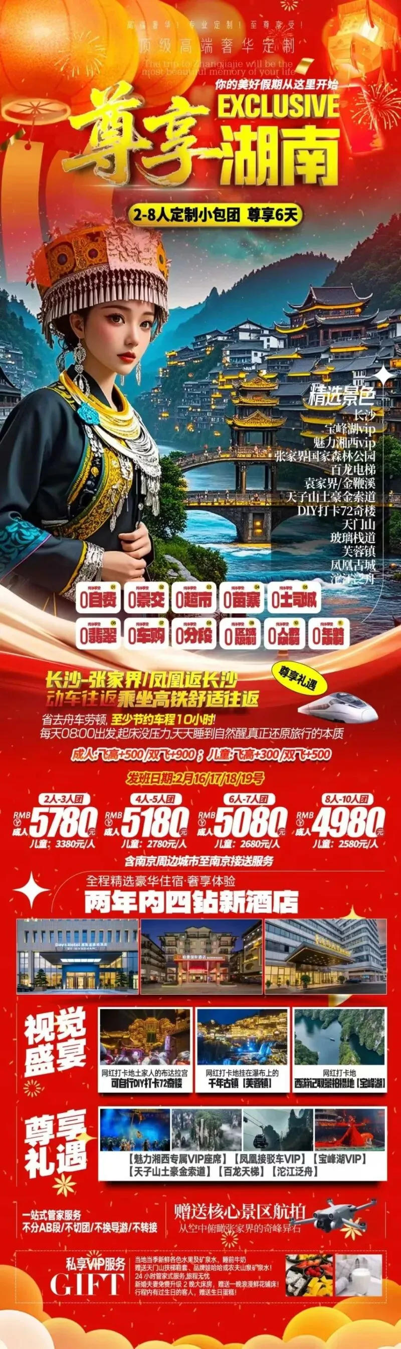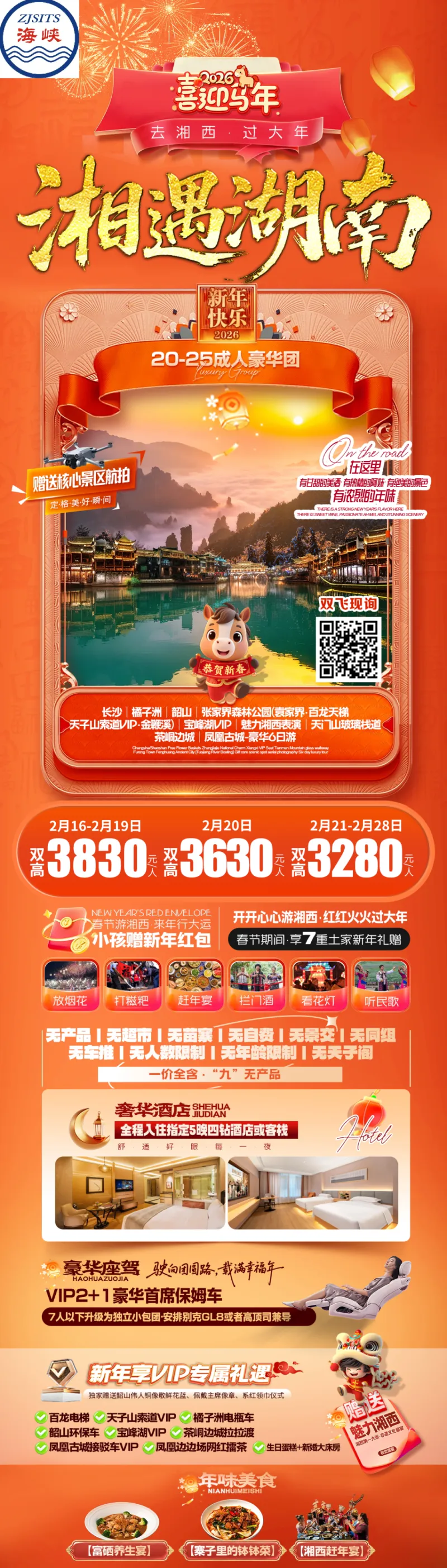 春节2月16/17/18/19号《湖南1+1头等舱》15-20人团
